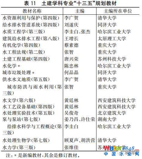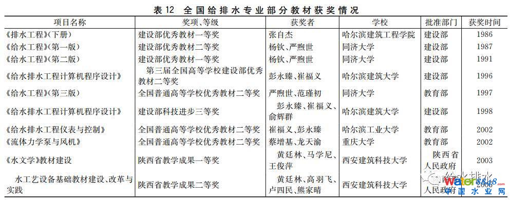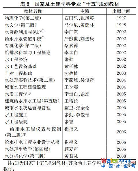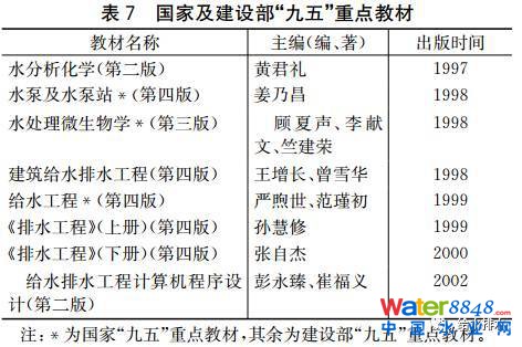 “九五”期間,給排水專業(yè)有3部教材被評(píng)為國(guó)家“九五”重點(diǎn)教材、5部教材被評(píng)為建設(shè)部“九五”重點(diǎn)教材(建設(shè)部建教[1996]591號(hào)文件),見(jiàn)表7。