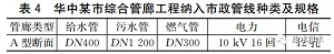 (2)綜合管廊的覆土深度需結(jié)合污水管道系統(tǒng)進行適當調(diào)整,管廊覆土深度4~5 m較為適宜。