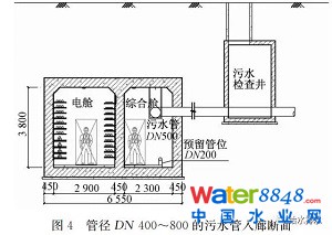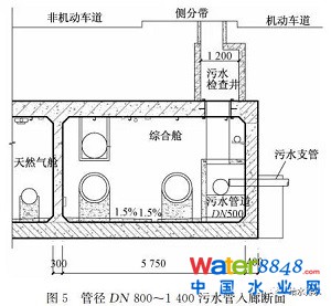 (4)污水管道進入綜合管廊內(nèi),綜合管廊應按現(xiàn)行國家標準《城市地下綜合管廊工程技術規(guī)范》的要求,設置相應的通風、照明、監(jiān)控等附屬設施。利用管廊結(jié)構(gòu)本體排水的污水艙,在加強結(jié)構(gòu)防腐的前提下,可視情況酌情考慮設置。