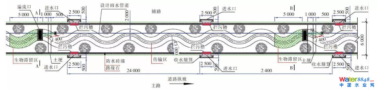 圖4 同德佳苑小區(qū)生態(tài)濾溝和雨水花園研究設(shè)施設(shè)計(jì)圖