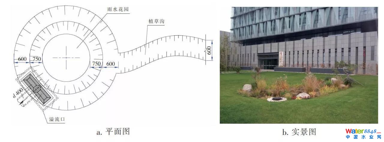 圖5 同德佳苑小區(qū)生態(tài)濾溝和雨水花園研究設(shè)施實(shí)景圖