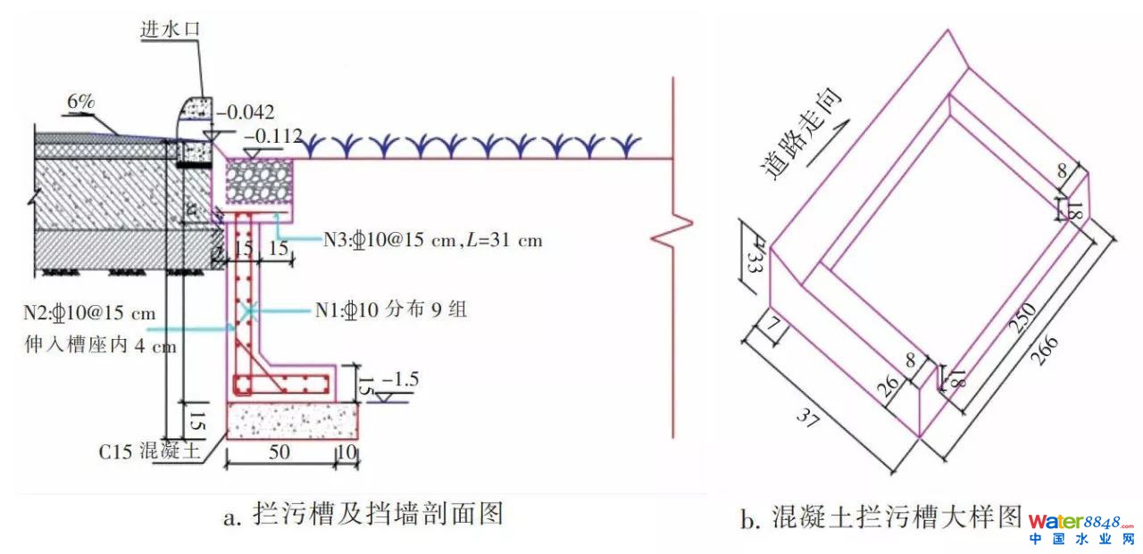 圖11 攔污槽及擋墻設(shè)計(jì)圖