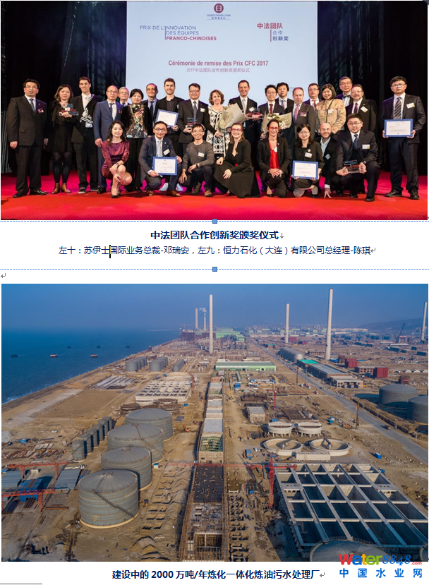 法中委員會是促進中法兩國商貿關系的重要機構,自2014年起每年組織“中法團隊合作創(chuàng)新“的評選活動,旨在獎勵中法兩國通過高等院校、實驗室、研發(fā)中心及企業(yè)共同合作研發(fā)的,對社會、經濟、工業(yè)與環(huán)境具有重要意義和影響的杰出創(chuàng)新項目。由蘇伊士新創(chuàng)建和恒力石化聯(lián)合打造的煉化污水處理項目,憑借其創(chuàng)新的”嵌入式污水處理廠“理念、良好的社會經濟和生態(tài)效益,榮獲“氣候特別獎”。