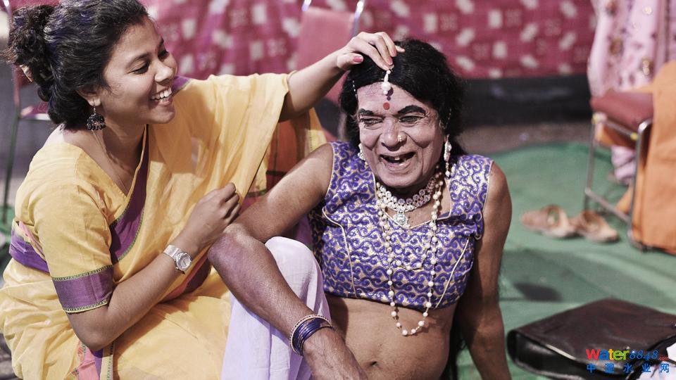 表演:圖右是一名92歲的印度男子,他是當(dāng)?shù)豅aundaNaach藝術(shù)家。他總是男扮女裝,而且,他從12歲就開始這樣的表演了。