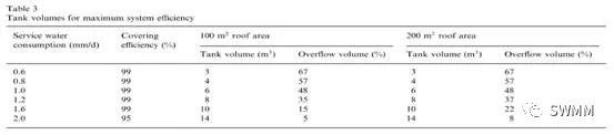 本次研究重點(diǎn)是分析雨水利用系統(tǒng)在長(zhǎng)時(shí)間不間斷模擬狀態(tài)下的水力性能。基于一系列的貯水容積,屋頂面積和工業(yè)水耗用速率,我們對(duì)下列參數(shù)進(jìn)行了分析:系統(tǒng)效率,發(fā)生溢流事件的頻率和溢流量,排向排水系統(tǒng)的溢流峰值的容積和周期、貯水池中附加調(diào)蓄容積的作用。