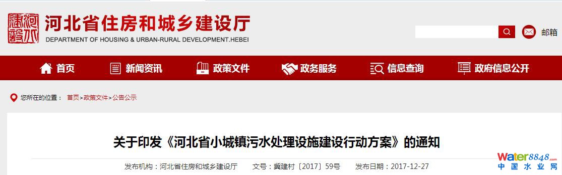 《河北省小城鎮(zhèn)污水處理設(shè)施建設(shè)行動(dòng)方案》出臺(tái)(附全文)