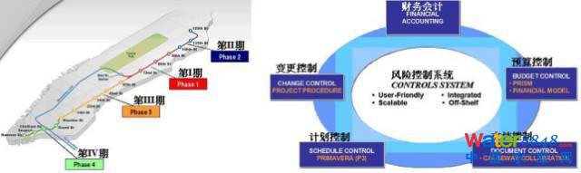 AECOM代表項(xiàng)目業(yè)主負(fù)責(zé)全面的項(xiàng)目群管理,針對(duì)該項(xiàng)目的工程技術(shù)特點(diǎn),分段、分期實(shí)施、交接和運(yùn)營(yíng)。為此,利用項(xiàng)目管理專業(yè)軟件包PRIMAVERA制訂了詳細(xì)的設(shè)計(jì)和施工計(jì)劃,并建立了風(fēng)險(xiǎn)管理和控制體系,以便系統(tǒng)地管理設(shè)計(jì)和施工變更、計(jì)劃控制、文檔資料控制和預(yù)算控制。