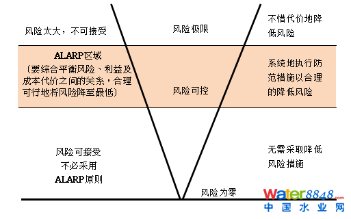 對(duì)于大型基礎(chǔ)設(shè)施工程而言,尤其需要采用系統(tǒng)化風(fēng)險(xiǎn)管理的技術(shù),進(jìn)行科學(xué)性和系統(tǒng)性的風(fēng)險(xiǎn)管理。系統(tǒng)性的工程風(fēng)險(xiǎn)管理是指實(shí)施以風(fēng)險(xiǎn)管理為核心的工程項(xiàng)目管理,在可實(shí)施的合理的最低風(fēng)險(xiǎn)原則(ALARP,As Low As Reasonably Practicable)的準(zhǔn)則下(如圖3所示),從項(xiàng)目組織架構(gòu)、項(xiàng)目承包模式和項(xiàng)目運(yùn)營(yíng)模式等各方面不同角度地實(shí)施風(fēng)險(xiǎn)管理。