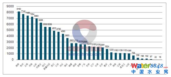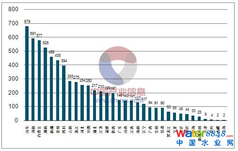 2017年9月管理庫各省項(xiàng)目數(shù)分布情況(單位:個(gè))