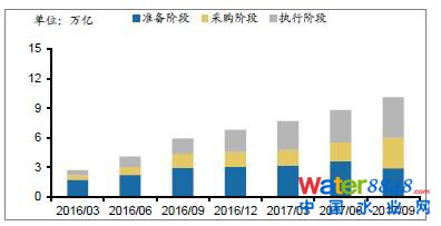 PPP儲(chǔ)備庫情況:截至2017年9月底,儲(chǔ)備庫項(xiàng)目共計(jì)7442個(gè),累計(jì)投資額達(dá)7.7萬億。項(xiàng)目處于識(shí)別階段,尚未完成物有所值評(píng)價(jià)和財(cái)政承受能力論證的審核,是地方政府部門有意愿采用PPP模式的儲(chǔ)備項(xiàng)目。