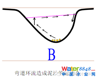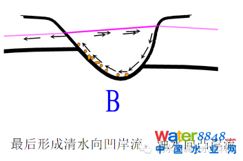 (二)彎道環(huán)流,清水流向凹岸,濁水流向凸岸