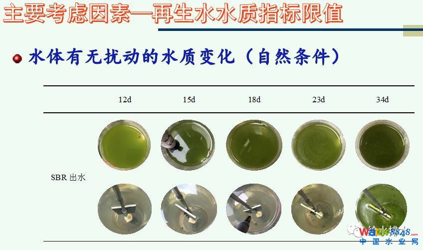 不同的指標值要考慮到國際上是什么樣的情況,國內(nèi)也做了相應不同的水體相應的觀測。根據(jù)這個觀測值,氮、磷,有機物等方面的變化。我們也采取了再生水的條件下,不同的配比以及真正自然水、再生水和純凈水做相應的對比分析。不同條件下水質(zhì)變化,在自然的條件下,即使是純凈水到很長一段時間也會有一定藻類的生長,地表的干沉降和濕沉降,這是很重要的影響因素,后面的水質(zhì)會越來越多,這是從自然現(xiàn)象以及冷水的水質(zhì)的影響。