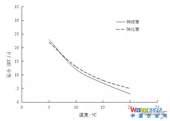 圖1 反硝化除磷系統(tǒng)中硝化菌與磷細(xì)菌最小SRT比較