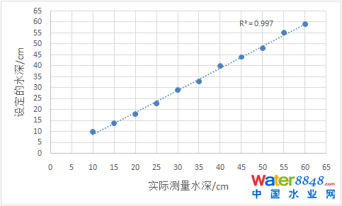 液位計(jì)傳感器是內(nèi)澇監(jiān)控點(diǎn)液位監(jiān)測(cè)系統(tǒng)的重要組成,其監(jiān)測(cè)數(shù)據(jù)直接影響到排水管網(wǎng)的調(diào)度管理決策及深隧排水系統(tǒng)的調(diào)度優(yōu)化研究結(jié)果。液位計(jì)傳感器需要選擇精度高、量程合適、穩(wěn)定性好的類型。此外,由于內(nèi)澇點(diǎn)通常位于城市的馬路上或人行道上,并且分布較為分散,電力和通訊設(shè)備難以匹配到位,應(yīng)選取低能耗的類型;且排水管網(wǎng)的污水環(huán)境較為惡劣,需選用防水等級(jí)IP68、材質(zhì)耐腐蝕的設(shè)備。針對(duì)本系統(tǒng)所選用的壓阻式液位傳感器,在實(shí)驗(yàn)室模擬排水管道窨井,放入液位計(jì)并改變窨井中液位,進(jìn)行實(shí)際測(cè)量液位與設(shè)定液位的線性回歸分析,測(cè)量液位值呈現(xiàn)的線性度良好,測(cè)量值與設(shè)定值線性相關(guān)系數(shù)為0.9975,誤差較小,精度符合要求(見圖2)。此外,在測(cè)試過程中,同一液位情況下,多次進(jìn)行測(cè)量,測(cè)量液位變化不大,穩(wěn)定性良好。