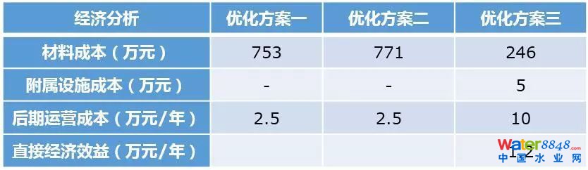 對比可發(fā)現(xiàn):優(yōu)化方案一以及優(yōu)化方案二前期成本高,后期運(yùn)營成本較低;生態(tài)效果較好;優(yōu)化方案三前期成本低,但是后期運(yùn)營成本較高;生態(tài)補(bǔ)水效果較差。