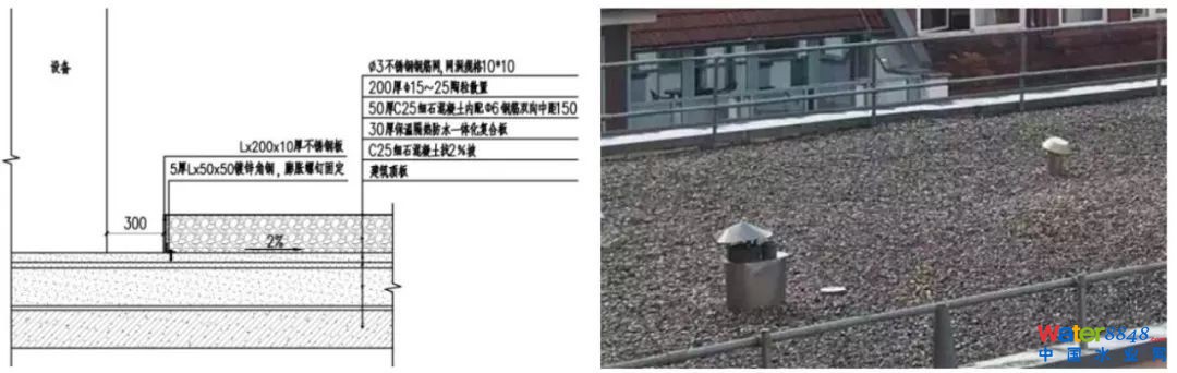 二是在硬化屋頂鋪撒一層蓄水材料(如陶粒)。通過鋪設(shè)松散的蓄水材料層,降低了雨水在屋面的流速及增大了蒸發(fā)從而達(dá)到滯、蓄作用。優(yōu)點(diǎn):具有隔水保氣作用和較高的強(qiáng)度;適用于超高層建筑屋面面積大又沒有雨水回用需求的項(xiàng)目。難點(diǎn):超高層屋頂風(fēng)較大,鋪設(shè)時(shí)需要考慮防風(fēng)吹走材料的技術(shù)措施;要避讓屋面設(shè)備基礎(chǔ)等,并考慮檢修人員的通行要求等。