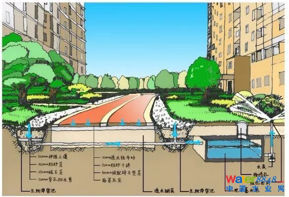利用部分吸水高分子材料(如多孔纖維棉等)的吸水性質(zhì)制作的有一定強(qiáng)度的高分子吸水材料,實(shí)現(xiàn)雨時(shí)吸水,旱時(shí)補(bǔ)水的作用。優(yōu)點(diǎn):集滲透、緩沖和排放功能于一體;滲透系數(shù)高、緩沖容量大;支持植物生長。缺點(diǎn):使用成本高。