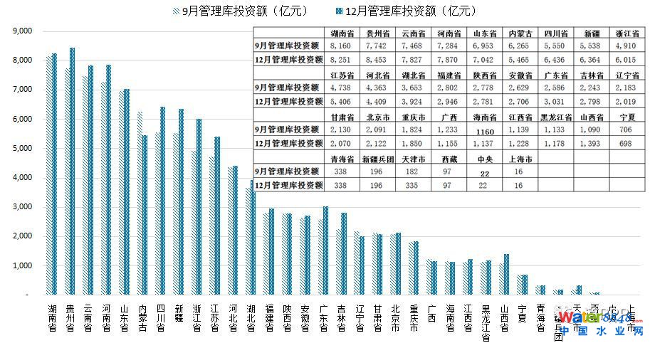 圖2-2-2 12月末與9月末管理庫項目投資額地域分布對比情況(億元)
