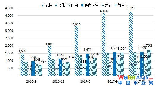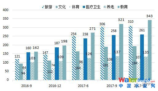 基本公共服務(wù)領(lǐng)域項目數(shù)季度環(huán)比凈增29個、年度同比凈增523個,投資額季度環(huán)比凈增312億元、年度同比凈增4,594億元。項目數(shù)前三位是教育343個、旅游310個、醫(yī)療衛(wèi)生261個;投資額前三位是旅游4,261億元、教育1,753億元、醫(yī)療衛(wèi)生1,599億元。如圖3-3-1、圖3-3-2。