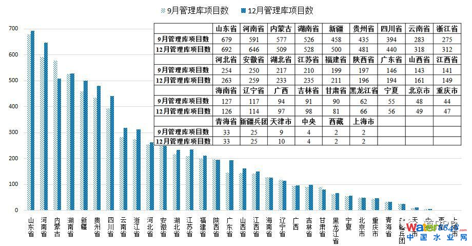 圖2-2-1 12月末與9月末管理庫項目數(shù)地域分布對比情況(個)