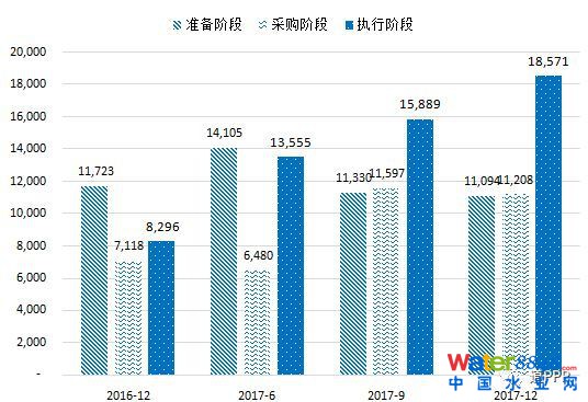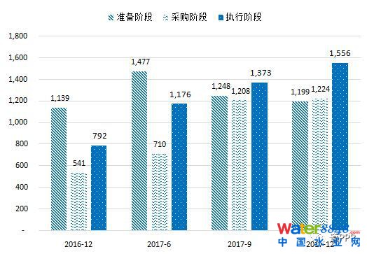 2017年10月,為進一步優(yōu)化管理,全國PPP綜合信息平臺項目庫劃分為管理庫和儲備清單。截至12月末,管理庫內(nèi)共有7,137個項目處于準(zhǔn)備、采購、執(zhí)行和移交階段,投資額10.8萬億元;與9月末季度環(huán)比凈 增項目359個(已扣除本月退庫項目數(shù))、投資額6,376億元;與2016年12月末年度同比凈增項目2,864、投資額4.0萬億元。其中,已落地(即簽約進入執(zhí)行階段)項目2,729個,投資額4.6萬億元,季度環(huán)比凈增落地項目341個、投資額5,126億元,年度同比凈增落地項目1,378個、投資額2.4萬億元。