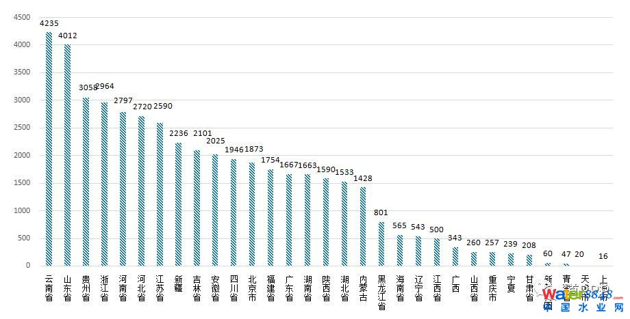 圖3-5-1 管理庫農(nóng)業(yè)領(lǐng)域各省項目數(shù)(個)