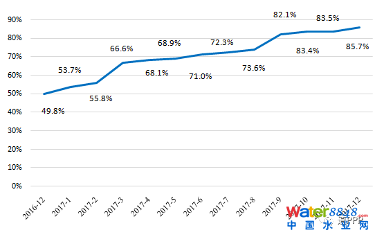 污染防治與綠色低碳落地項目1,556個,投資額1.9萬億元;季度同比凈增落地項目183個、投資2,682億元;年度同比凈增項目764個、投資額1.0萬億元。2016年12月末至2017年12月末管理庫污染防治與綠色低碳項目數(shù)、投資額情況和占比情況見圖3-4-1、圖3-4-2和圖3-4-3。