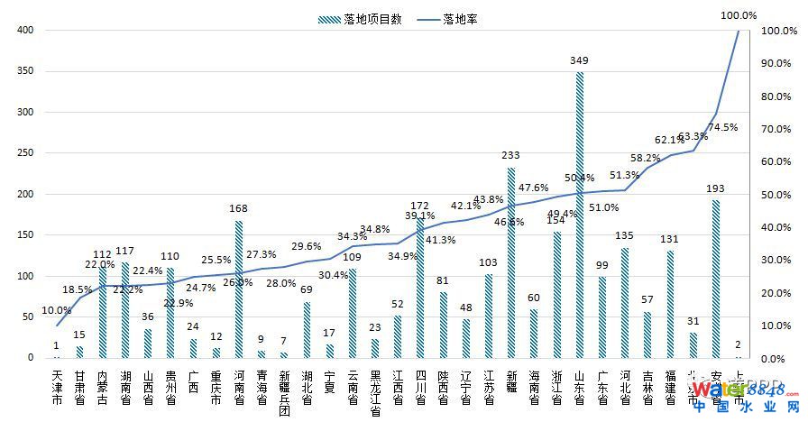 落地率,上海共2個項目,已100%落地,位居第一;安徽259個項目中落地193個,落地率74.5%,位居第二;北京49個項目中落地31個,落地率63.3%,位居第三。
