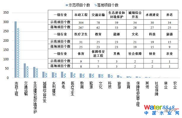 PPP項目涉及能源、交通運輸、水利建設(shè)、生態(tài)建設(shè)和環(huán)境保護、市政工程、城鎮(zhèn)綜合開發(fā)、農(nóng)業(yè)、林業(yè)、科技、保障性安居工程、旅游、醫(yī)療衛(wèi)生、養(yǎng)老、教育、文化、體育、社會保障、政府基礎(chǔ)設(shè)施和其他19個一級行業(yè)。示范項目涵蓋除政府基礎(chǔ)設(shè)施外的18個行業(yè),12月末,落地項目已全部覆蓋這18個行業(yè)。