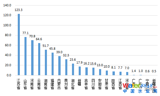 圖3-5-2 管理庫農(nóng)業(yè)領(lǐng)域各省項目投資額(億元)