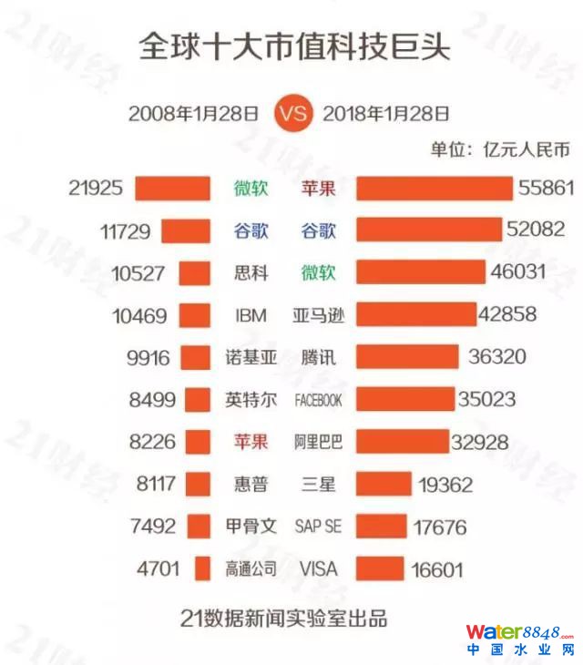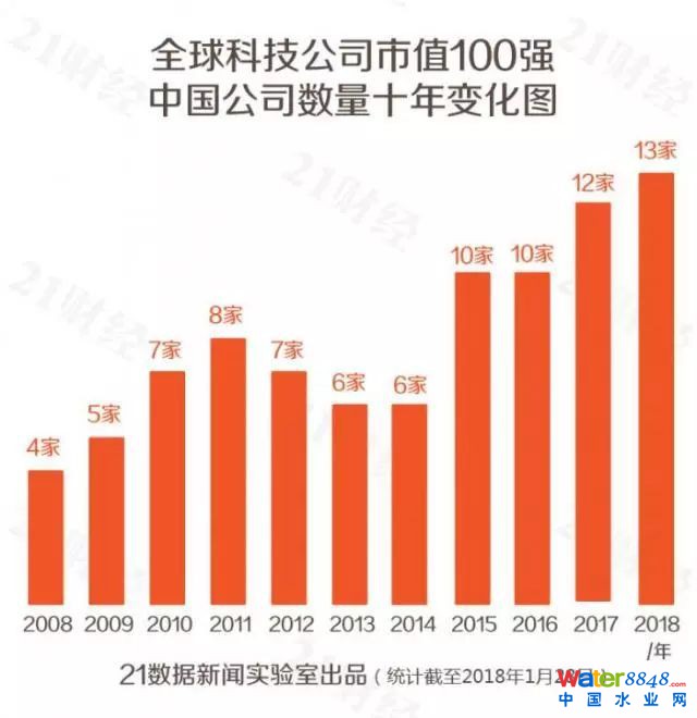 據(jù)統(tǒng)計(jì),2008年1月28日,進(jìn)入百強(qiáng)榜單的中國(guó)公司僅騰訊、百度、中興通訊、富智康4家,且排名均在50名之后。而十年后已增至13家,且騰訊、阿里已經(jīng)穩(wěn)居前十。