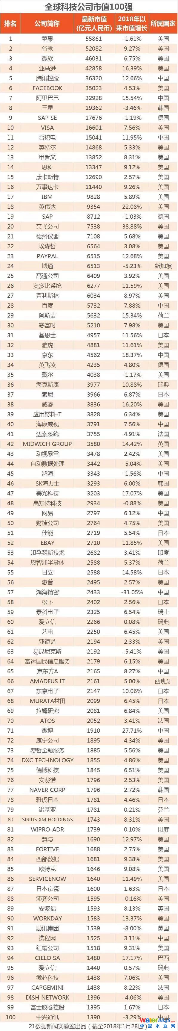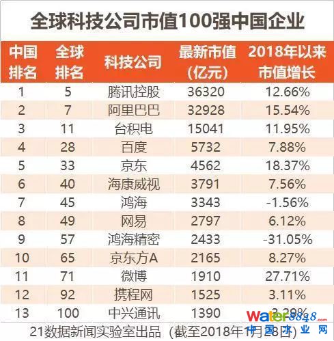 全球科技公司市值100強(qiáng): 除了BATJ,還有哪些中國(guó)公司上榜?