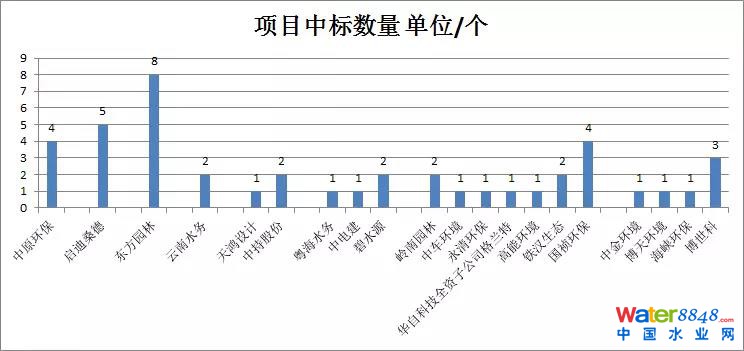 農(nóng)水市場(chǎng)項(xiàng)目數(shù)量約占14.63%,隨著將來國(guó)家出臺(tái)農(nóng)村污水排放標(biāo)準(zhǔn),日益注重效果的環(huán)境下,農(nóng)水市場(chǎng)仍待盤活。