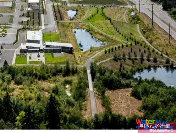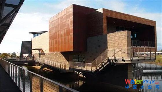 明水污水廠在2011年開始運(yùn)行,該廠是金縣40年來最大的水處理工程,也是美國乃至世界經(jīng)典的MBR污水廠。它也因?yàn)槠涑霰姵鏊|(zhì)榮獲Global Water Intelligence 2012年水回用項(xiàng)目的獲獎單位。該污水廠最大的亮點(diǎn)是其環(huán)境和社區(qū)中心以及70公頃的公共空間、長達(dá)3英里的步行小徑和40公頃的自然棲息地。這也是個LEED認(rèn)證的建筑,包括了一系列可持續(xù)的元素,包括了自然通風(fēng)系統(tǒng)、自然采光、能源之星節(jié)能設(shè)備、中水回用(灌溉和沖廁)、節(jié)能照明和當(dāng)?shù)刂圃斓奶柲馨宓取?/p>