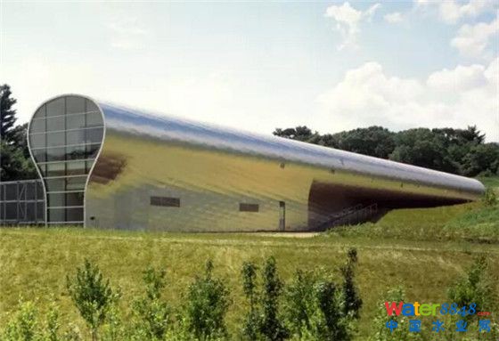 這個水凈化廠建在公園的地下,而運(yùn)行設(shè)備則安放在360尺廠的不銹鋼結(jié)構(gòu)的建筑物里,這個建筑像一個倒置的水滴,這造型創(chuàng)造了弧線的室內(nèi)空間,形成了一個強(qiáng)大反射線的景觀。建筑內(nèi)部設(shè)施包括一個展覽大廳、化驗(yàn)室、演講廳、會議空間,以及其他的業(yè)務(wù)設(shè)施。該項(xiàng)目采用地下熱交換等技術(shù)減少能源消耗,選擇耐用性的材料,減少化學(xué)品的用量。