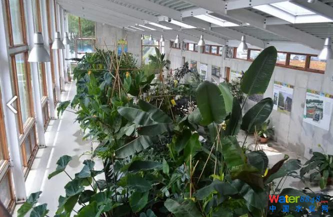 聽起來逼格很高?其實(shí)污水處理真沒什么奧秘,OCSL的處理原理就很簡單。一開始,所有污物像人類排泄物和“灰水”例如廁所、洗手盆和淋浴等產(chǎn)生的廢水送入儲罐收集,然后輸送至生態(tài)機(jī)器(Eco-Machine)。第一階段是用兩個18立方米的化糞池和缺氧池作為調(diào)節(jié)預(yù)處理,出水流入四個人造濕地,內(nèi)襯橡膠,堆滿碎石,利用依附在植物根系上的生物膜對污水作進(jìn)一步凈化。據(jù)說此時污染物去除率已達(dá)75%。第三階段是好氧曝氣池,一個多級食物鏈的生態(tài)系統(tǒng),去除大部分的營養(yǎng)物。最后經(jīng)循環(huán)砂濾后,廢水就已變成符合標(biāo)準(zhǔn)的家庭用的清潔水源。這個生態(tài)機(jī)器是一個現(xiàn)代溫室構(gòu)造,太陽光伏板供電,里邊還能用作瑜伽課室。
