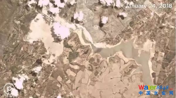 1月31日,美國(guó)普萊德科技公司向CNN提供了一系列衛(wèi)星圖,上面可以清楚地看出,兩年多來(lái),水庫(kù)是如何一步步干涸到今天的地步的。