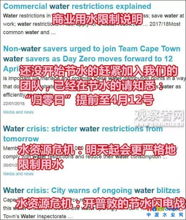 當(dāng)?shù)卣粫r(shí)發(fā)布呼吁節(jié)水的公告 開(kāi)普敦政府官網(wǎng)截圖