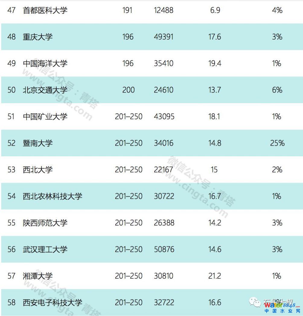 第二:上榜的高校中,排名前100中,只有一所西部的高校,西北交通大學,排名全亞洲第90.優(yōu)質高校的分布,差距還是比較大。