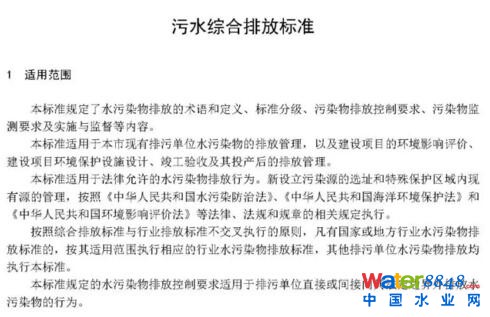 污水綜合排放標(biāo)準(zhǔn)解決國標(biāo)地標(biāo)交叉問題