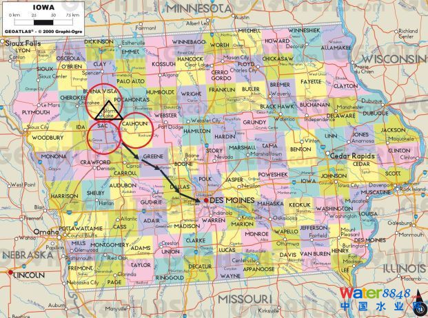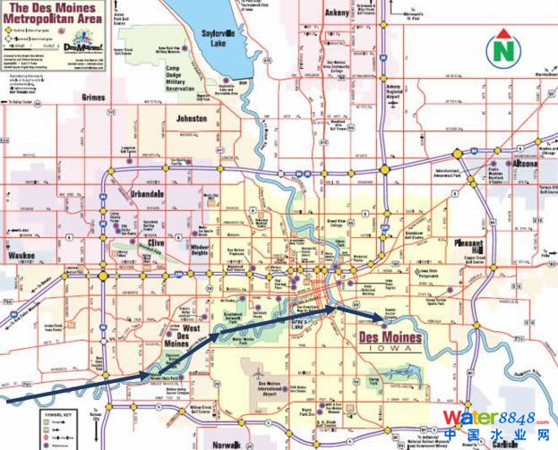 得梅因市(Des Moines)是艾奧瓦州第一大城市,州府所在地,總?cè)丝?0萬。市民飲水取自從西向東流經(jīng)該市的浣熊河(Raccoon River),下游最終匯入密西西比河。