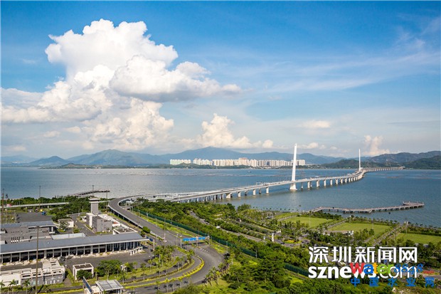 深圳河灣流域水質(zhì)的提高,使深圳灣的景色更加的美麗。圖為深圳灣區(qū)域的西部通道航拍