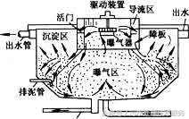 4)池中設(shè)有導(dǎo)流板,可使混合液呈循環(huán)流動(dòng)狀態(tài)。