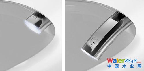 馬桶側邊的觸控按鈕,可以開關馬桶蓋以及控制沖水壓力,清洗更干凈。