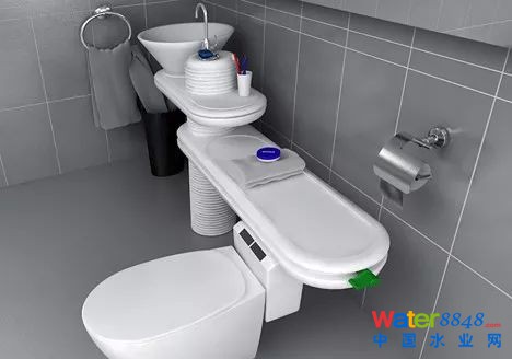 來自米蘭的設計師Gabriele and Oscar Buratti設計了這款馬桶、洗手池一體化的產(chǎn)品。來自洗手池的水可以用來沖馬桶。
