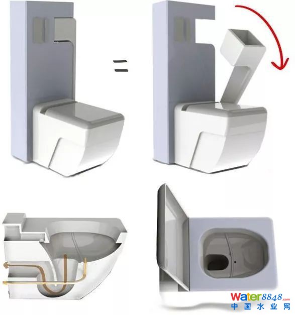 來自設計師Gareth Humphreys等人的設計,如廁的時候這個馬桶和普通馬桶沒什么兩樣,只是在沖水的時候,需要將整個馬桶豎立起來。因為在這種狀態(tài)下,馬桶所占用的空間和所需水都會減少,但是會沖洗得更加干凈。