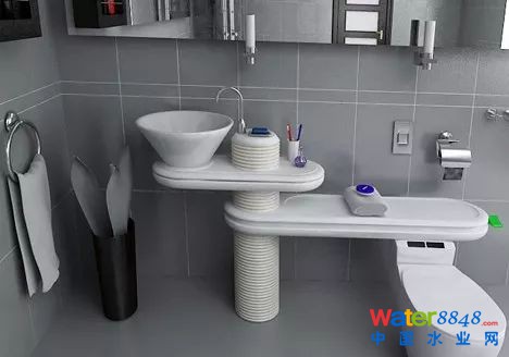 設計師Jang Woo-seok為了提倡大家節(jié)約用水,設計了這款可以二次利用水資源的水槽馬桶一體設備。洗臉洗手用過的水,可以存儲在設備中,馬桶沖水時便可以利用起來。