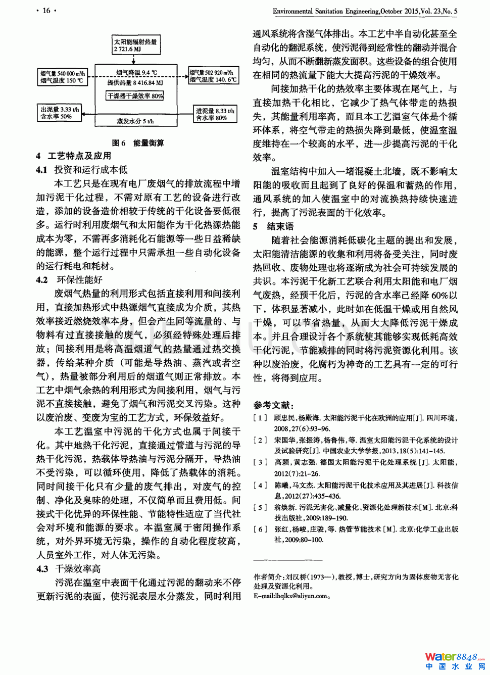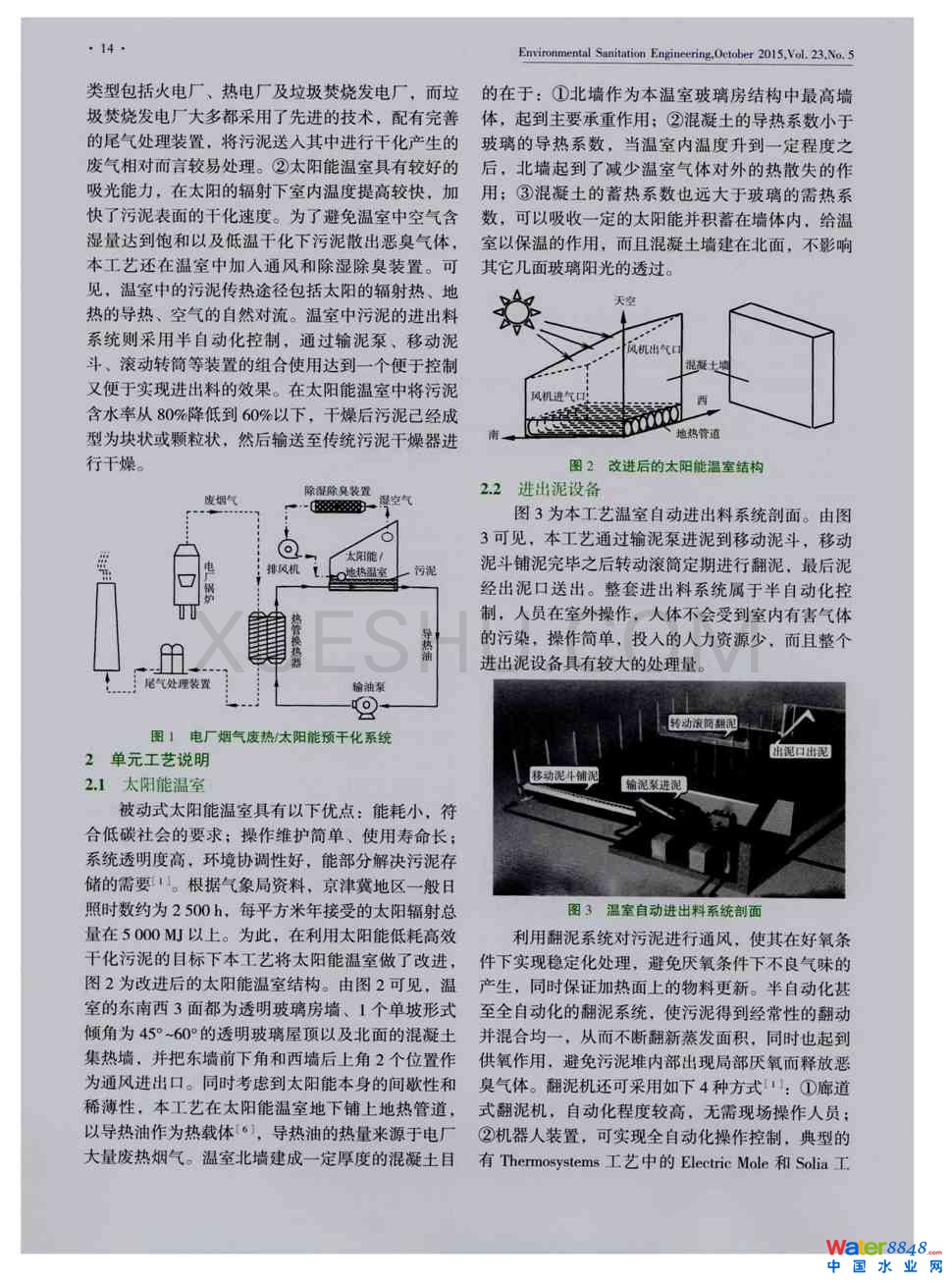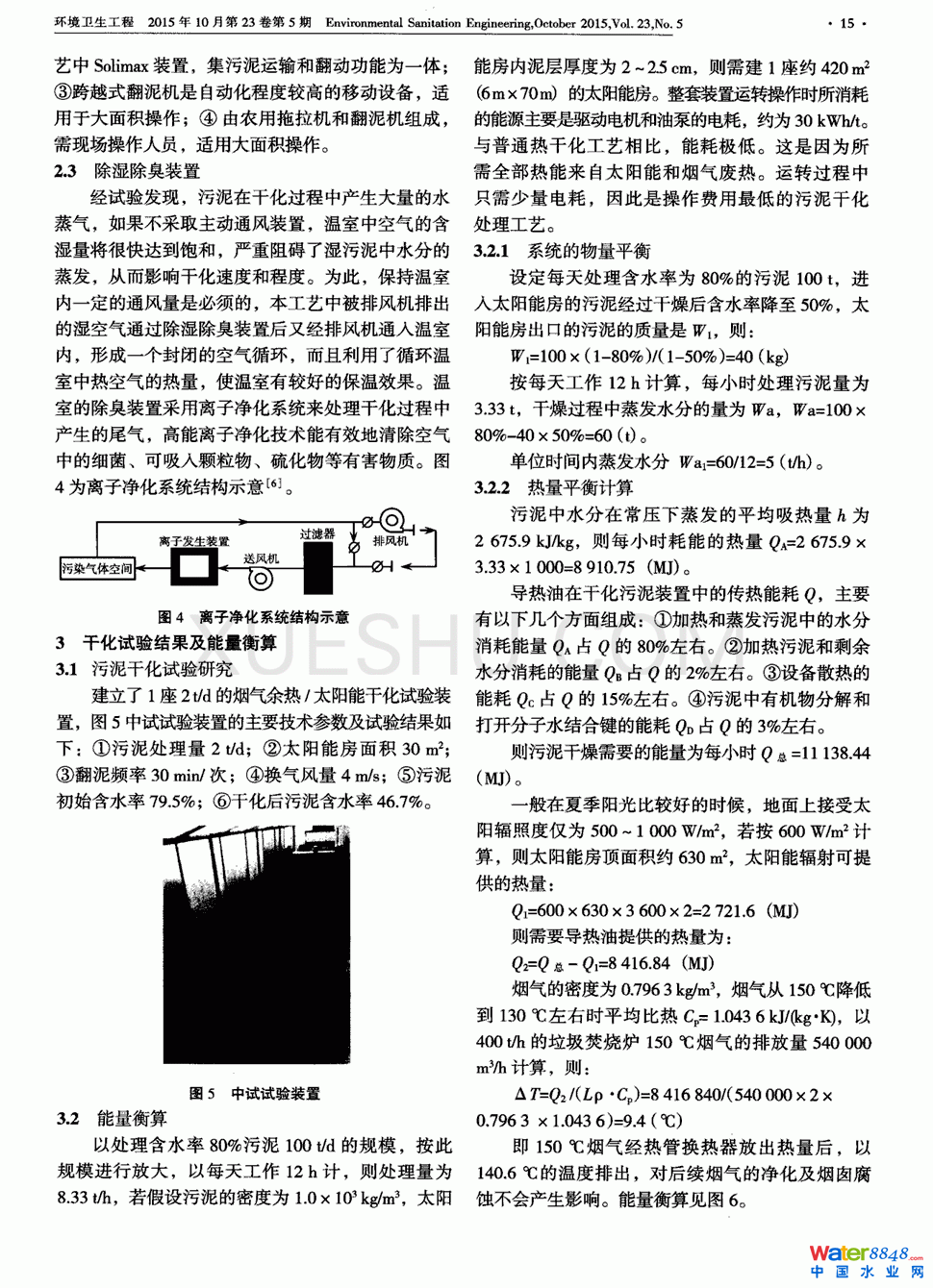為降低污水廠污泥干燥能耗,結(jié)合太陽(yáng)能溫室干燥技術(shù)和電廠煙氣廢熱干燥技術(shù),提出了煙氣廢熱/太陽(yáng)能預(yù)干化新工藝,構(gòu)建了工藝流程并對(duì)工藝單元進(jìn)行了確定,并通過(guò)煙氣余熱/太陽(yáng)能預(yù)干化污泥中試試驗(yàn)結(jié)果進(jìn)行了能量衡算。