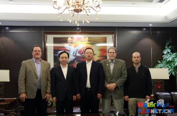 瀏陽(yáng)經(jīng)開(kāi)區(qū)黨工委副書(shū)記、管委會(huì)主任談文昌(左三)在長(zhǎng)沙會(huì)見(jiàn)永清美國(guó)Integrated Science&Technology公司總裁、國(guó)際知名環(huán)保專家James Reisinger(右二),永清集團(tuán)董事長(zhǎng)劉正軍(左二)陪同會(huì)見(jiàn)。