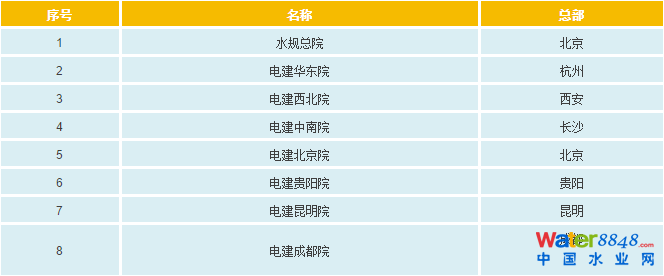 原中水顧問(wèn)系統(tǒng)8個(gè)設(shè)計(jì)研究院: